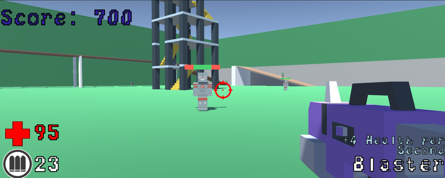 Weapons Arena is a game where you fight in an open 3d arena against enemies. There are different types of weapons scattered around, but they have different modifiers, forcing you to think strategically about the weapons you pick up (Some may be good, but others may have a lot of negative modifiers!)